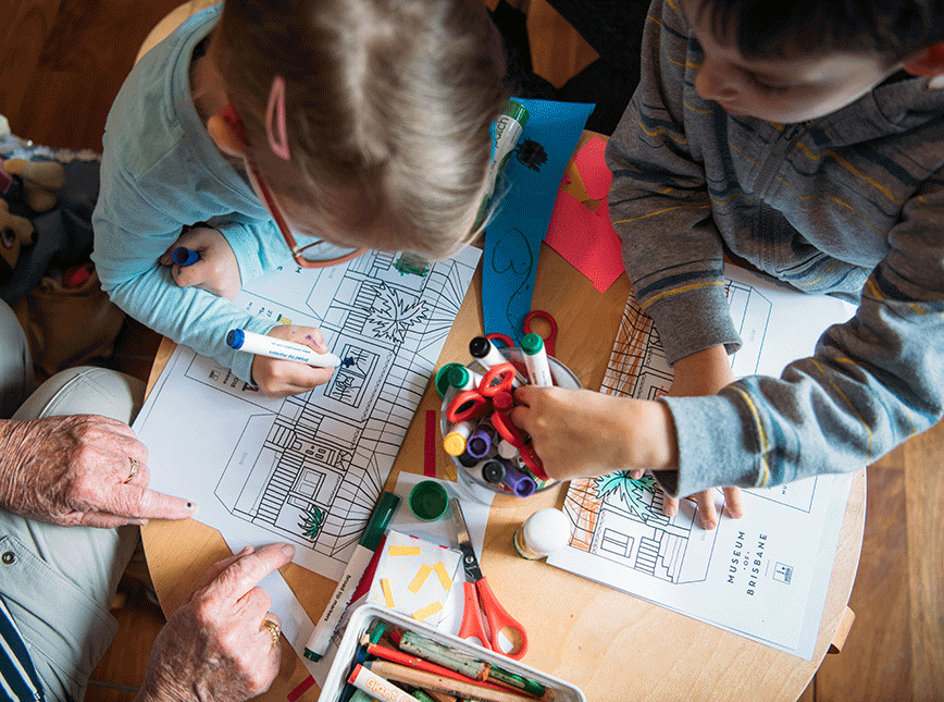 Budding architects can create their dream Queenslander using a template designed by artist Megan McKean. The distinctive architecture of Brisbane’s timber and tin homes has had a whimsical makeover by McKean Studio in this DIY art project where you colour, cut and build a three-dimensional paper house.