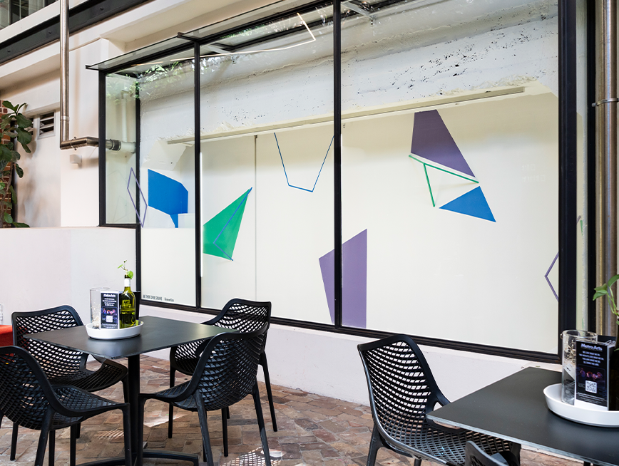 Artist in Residence Renee Kire takes over Museum of Brisbane’s entryway, transforming these spaces with a vibrant and dynamic mix of striking vinyl graphics and sculptural timber elements, creating an immersive pathway that stretches across walls and ceilings, guiding you into the heart of the Museum.